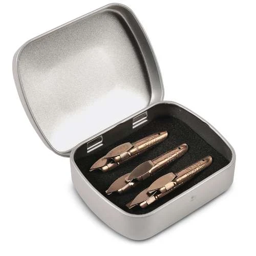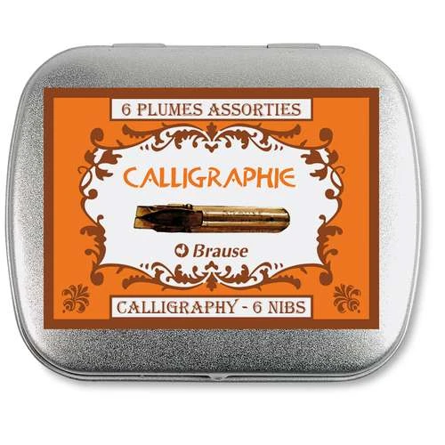 This Brause Calligraphy Nib Set is presented in a metal box and consists of 6 special calligraphy nibs.