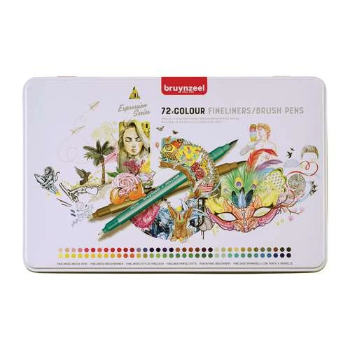 Bruynzeel Creatives Fineliner Brush Pens have dual tips: a brush tip for applying thinner and thick lines, and a durable fineliner 0.4mm nib for adding fine detail to any project. The nib is extra strong and cannot be pushed in. Bruynzeel Creatives Fineliner Brush Pens contain water-based ink and are gluten free.