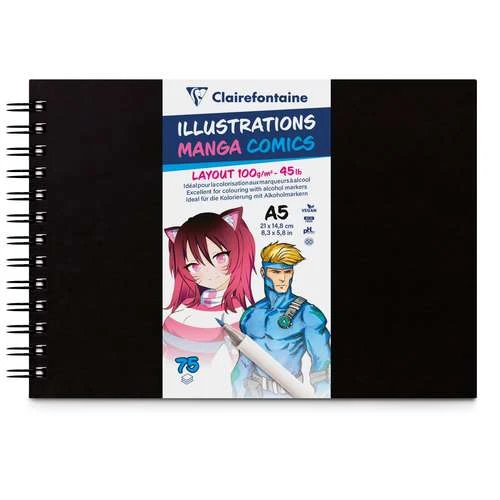 These Clairefontaine Illustrations Manga Comic Books are spiral notebooks with rigid and elegant black covers. They are suitable for all types of illustrators: manga, comics, designer etc.