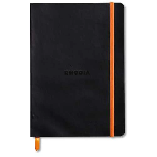 - Soft cover with square back glued in Italian imitation leather with embossed Rhodia logo