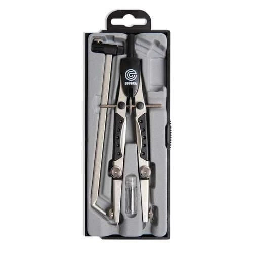 These Ecobra Quick Action Compasses have an automatic spindle, perfect handling due to integrated ergonomic plastic grips and bendable knee joints. The set is presented in a clear case.