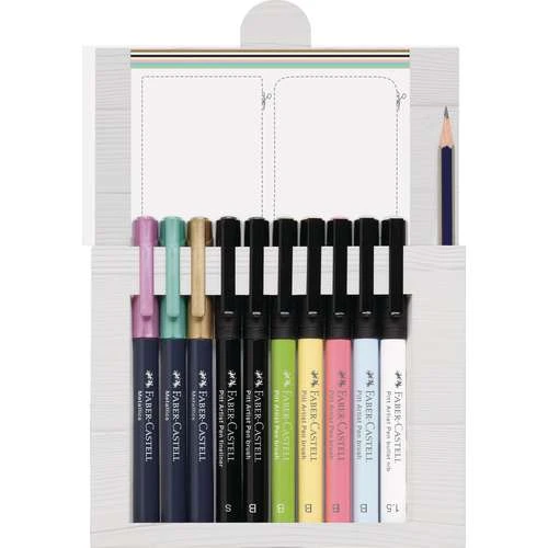 In addition to a pencil for preliminary drawings, this Faber-Castell Handlettering Gift Set also includes Pitt Artist Pen Fineliners for contours, fine details and decorations, Pitt Artist Pens with a brush tip for lettering, curves and filling-in, andmmetallic markers for a beautiful glitter effect. The set also includes greeting cards in different colours and templates for gift tags, and a hand lettering booklet with instructions and tips.