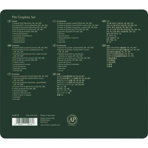 The Faber-Castell Pitt 19 Piece Graphite Set is a selected assortment of Castell 9000, Castell 9000 Jumbo and other graphite pencils and chalks. It is ideal for for creative beginners and professionals.