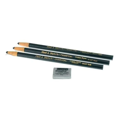 This General’s Peel & Sketch Charcoal Pencil Pack contains 3 handy charcoal sticks which eliminate the need for messy sharpening, plus a kneadable eraser