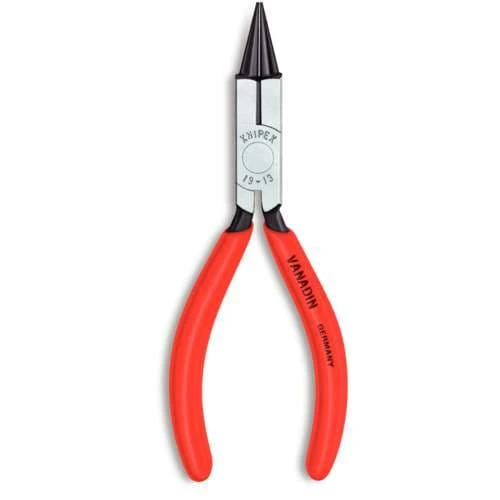 These Knipex Jewellery Pliers have precision ground pointed round jaws made from vanadium steel, hardened in oil and tempered. They are 13cm long. The handles are plastic-coated.