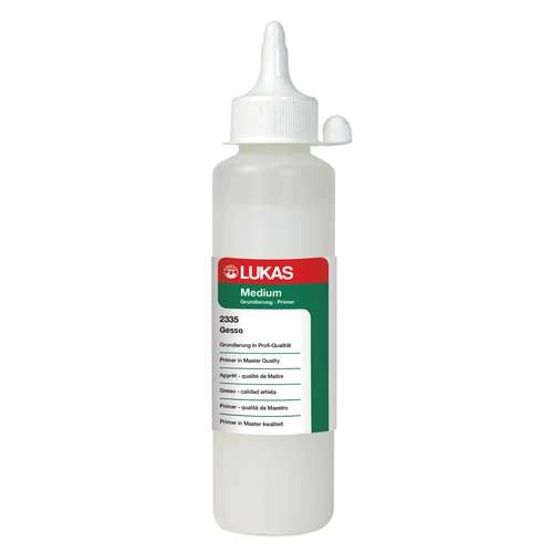 Lukas white primer produces a mildly absorbent ‘half chalk’ surface, useful for various painting techniques such as oil, acrylic and gouache and is ideal for priming your own canvases.