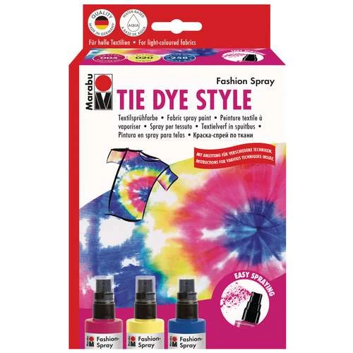 This Marabu Fashion Spray Tie Dye Style Set contains 3 textile spray paints for transforming T-shirts and other textiles into unique favorites. Create circles, spirals and stripes at will!