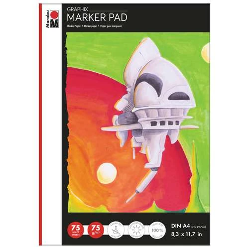 The Marabu Graphix Marker Pad contains 75 sheets of marker paper for alcohol-based markers. An integrated solvent barrier ensures brilliant colour reproduction without the colour bleeding through.