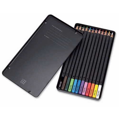 This Moleskine Naturally Smart Watercolor Pencil Set contains 12 watercolour pencils in the typical Moleskine design. They are made from natural cedar wood and are presented in a slim, matt black pocket box.