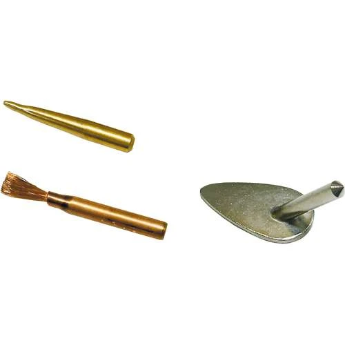 - 3 attachments (writing tip, brass brush, teardrop iron insert)
