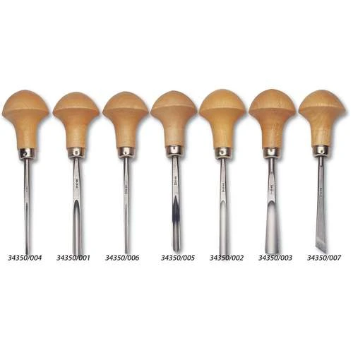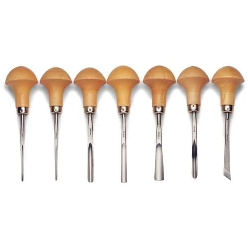 These Pfeil Lino & Wood Cutting Tools have oiled pear wood handles in a mushroom shape, with stainless ferrules. They offer an excellent price/performance ratio.