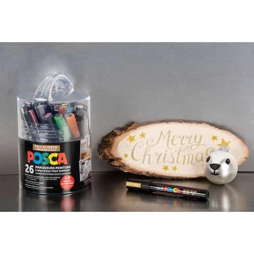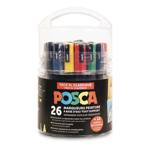 These markers are water-based and odourless. Each Posca XL Marker Set includes 26 markers, plus replacement tips, with the following variations available: