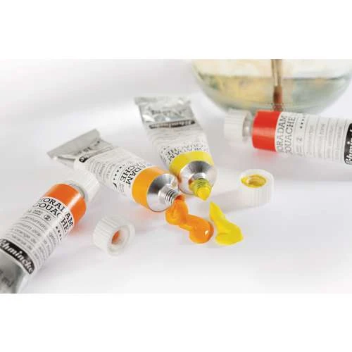 Schmincke Horadam Gouache is a pure, exquisite gouache paint with the best, real artist pigments, highly concentrated for luminosity and depth of colour, based on gum arabic. The natural opacity of the pure artist pigments is not strengthened by white components.