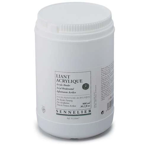 This Sennelier Acrylic Binder gives a satin or glossy film depending on the proportion of acrylic resin. It is available in 200ml bottles or a 900ml can.