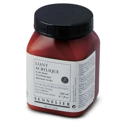 Sennelier Acrylic Binder is a pure acrylic resin (acrylic polymer) and 46% dry extract. It is a shiny, transparent medium suitable for indoor and outdoor use.