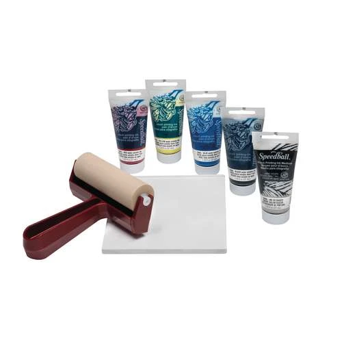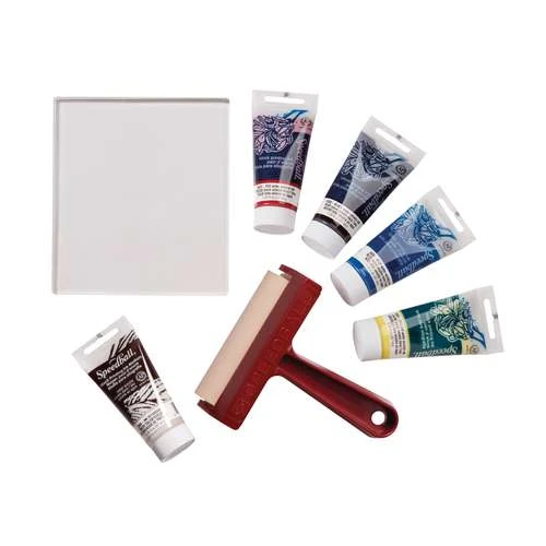 The Speedball Gel Printing Kit combines Speedball’s gel printing plates with their range of water soluble inks. This kit contains everything you need to add a new dimension to your projects.