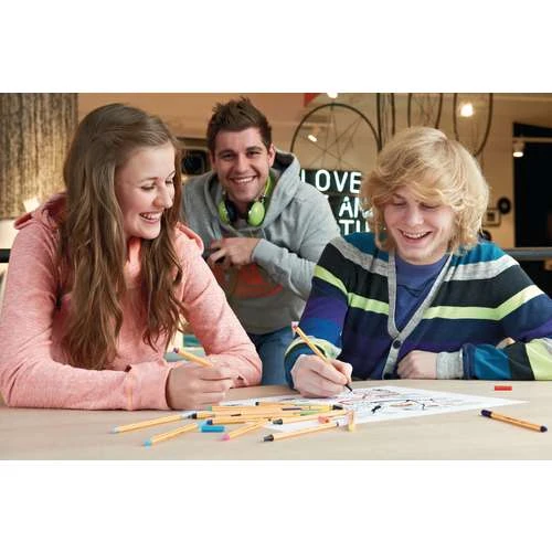 The Stabilo Point 88 Fineliner Pen Set contains 15 pens in a plastic pouch with flap. The pens are instantly recognisable with their yellow hexagonal barrel with white stripes. They are excellent to hold and are very durable.