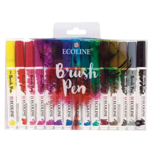 The Talens Ecoline Brush Pen Marker Sets contain high-quality brush tip pens ideal for thin, precise lines, expressive brushstrokes and also filling larger areas of colour.