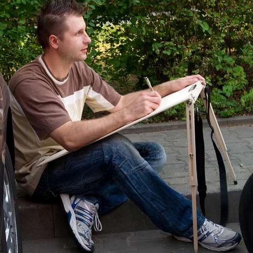 The Wooden Drawing Board with Legs is the perfect companion for drawing and sketching outdoors. It consists of a work surface made of 6mm thick plywood and 2 adjustable legs made of beech wood.